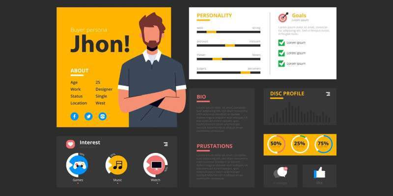 Enfin, à partir de ces caractéristiques, vous pouvez créer des profils fictifs, appelés personas, qui représentent chaque groupe cible. Chaque persona doit être suffisamment distinct et représentatif de son groupe, avec un nom, une photo et une description détaillée de ses attributs, de ses comportements et de ses objectifs.