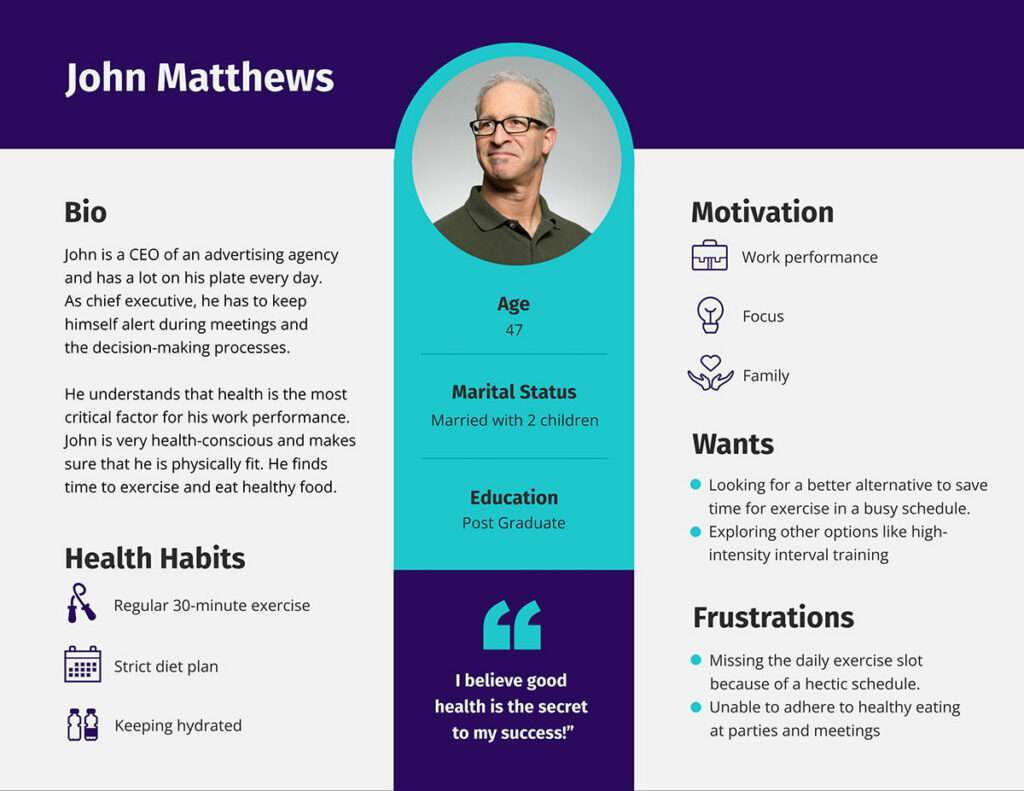 Pour rendre la présentation plus attrayante, utilisez des graphiques, des infographies ou des tableaux pour résumer les informations clés. Cela permet une visualisation claire et concise des caractéristiques du persona. - Partagez des exemples concrets :