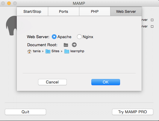 Le fonctionnement du logiciel MAMP est simple, il consiste à définir un répertoire spécifique sur votre ordinateur comme étant votre serveur virtuel.