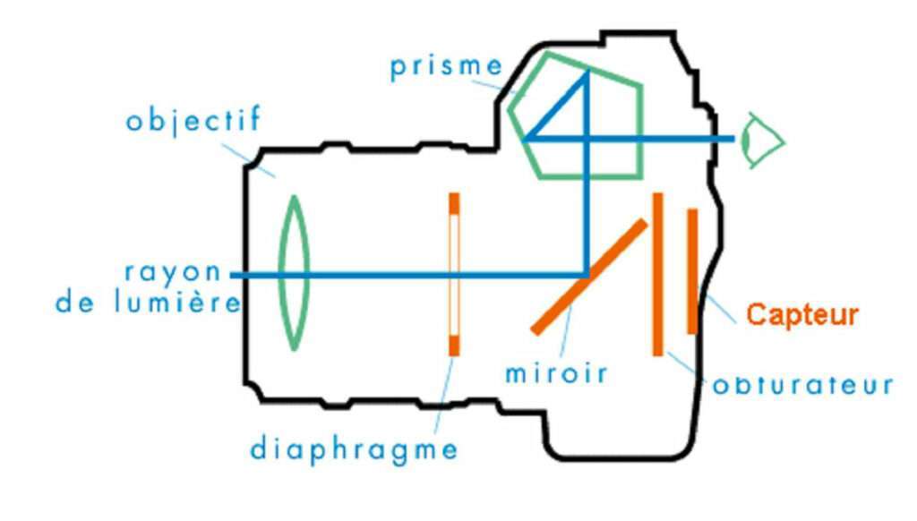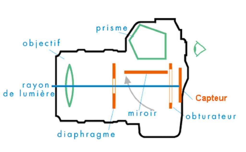 Lors de la prise de vue, le miroir se lève pour exposer le capteur à la lumière.