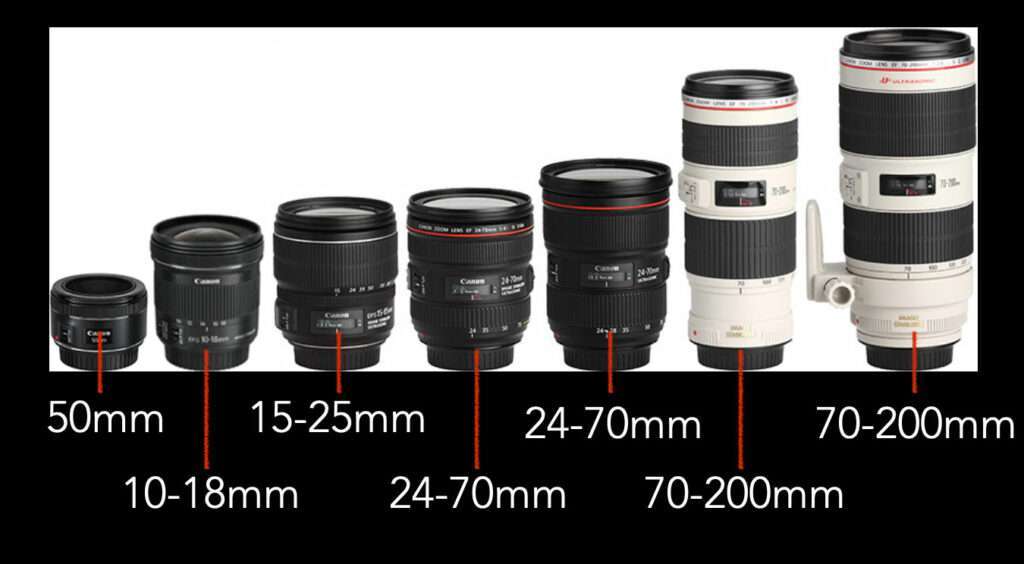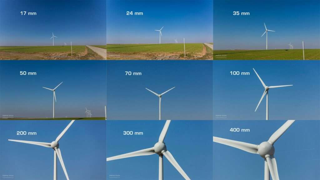 La focale définit l’angle de vue de l’objectif. Une petite focale donne un angle large (grand angle), tandis qu’une grande focale crée un angle étroit (téléobjectif).