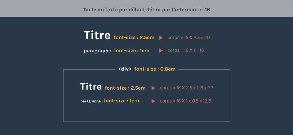 Mais le cadratin permet d’aller encore plus loin. Si nous appliquons une valeur em à un container, l’ensemble de ses enfants se verra impacté par cette valeur.