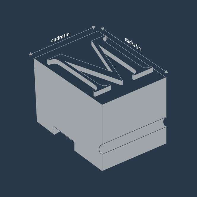 Le cadratin, en typographie, est une unité de mesure de longueur des espaces. Sa traduction anglaise em (de la lettre M) est utilisée comme symbole de l’unité. Historiquement, le cadratin correspond à la hauteur d’un caractère de plomb utilisé dans l’imprimerie. Et plus précisément celui de la lettre M majuscule dont la pièce était carré.