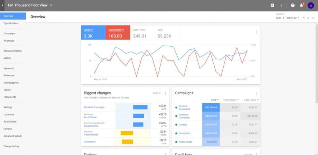 Une fois que vos campagnes sont actives, il est essentiel de mesurer leurs performances pour évaluer leur efficacité. Google Ads propose des outils d’analyse détaillés qui vous permettent de suivre les clics, les impressions, les conversions et bien plus encore. Par exemple, en tant que consultant en marketing numérique, vous pouvez utiliser les outils d’analyse de Google Ads pour suivre le nombre de clics sur votre annonce, le taux de conversion des visiteurs en clients potentiels et le coût par acquisition de nouveaux clients. Cela vous permet d’ajuster vos campagnes en fonction des performances pour optimiser votre retour sur investissement.