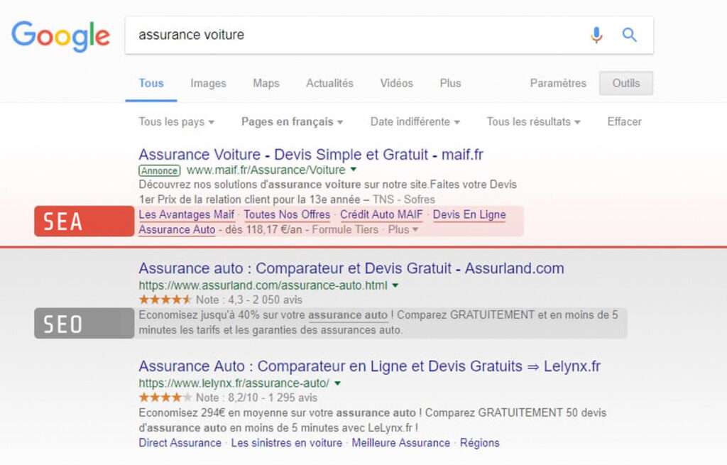 Jusqu’ici, nous avons déjà abordé le SEO (l’optimisation pour les moteurs de recherche) qui vise à améliorer la visibilité de votre site dans les résultats de recherche. C’est un trafic gratuit et durable, mais il existe d’autres outils marketing pour le compléter. Le SEA, ou publicité sur les moteurs de recherche, en fait parti, il consiste à créer des campagnes publicitaires payantes pour apparaître en tête des résultats de recherche. C’est un trafic payant et instantané. La différence majeure entre ces deux notions réside dans le temps d’obtention des résultats : le SEO demande du temps, tandis que le SEA offre des résultats immédiats.